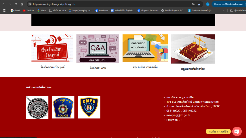 Q แจ้งแบะแส ร้องเรียน ร้องทุกข์ เกี่ยวกับการกระทำผิดของเจ้าหน้าที่ตำรวจA. สถานีตำรวจในพื้นที่ หรือ สำนักงานจเรตำรวจ๗๐๑/๗๐๑ ถ.รามอินทรา แขวงท่าแร้ง เขตบางเขน กรุงเทพฯ ๑๐๒๒๐โทรศัพท์ : ๐๒-๕๐๙-๘๗๙๗ โทรสาร : ๐๒-๕๐๙-๘๗๙๗ ต่อ ๑๒๑๙เว็บไซต์ : http://jaray.police.go.th
