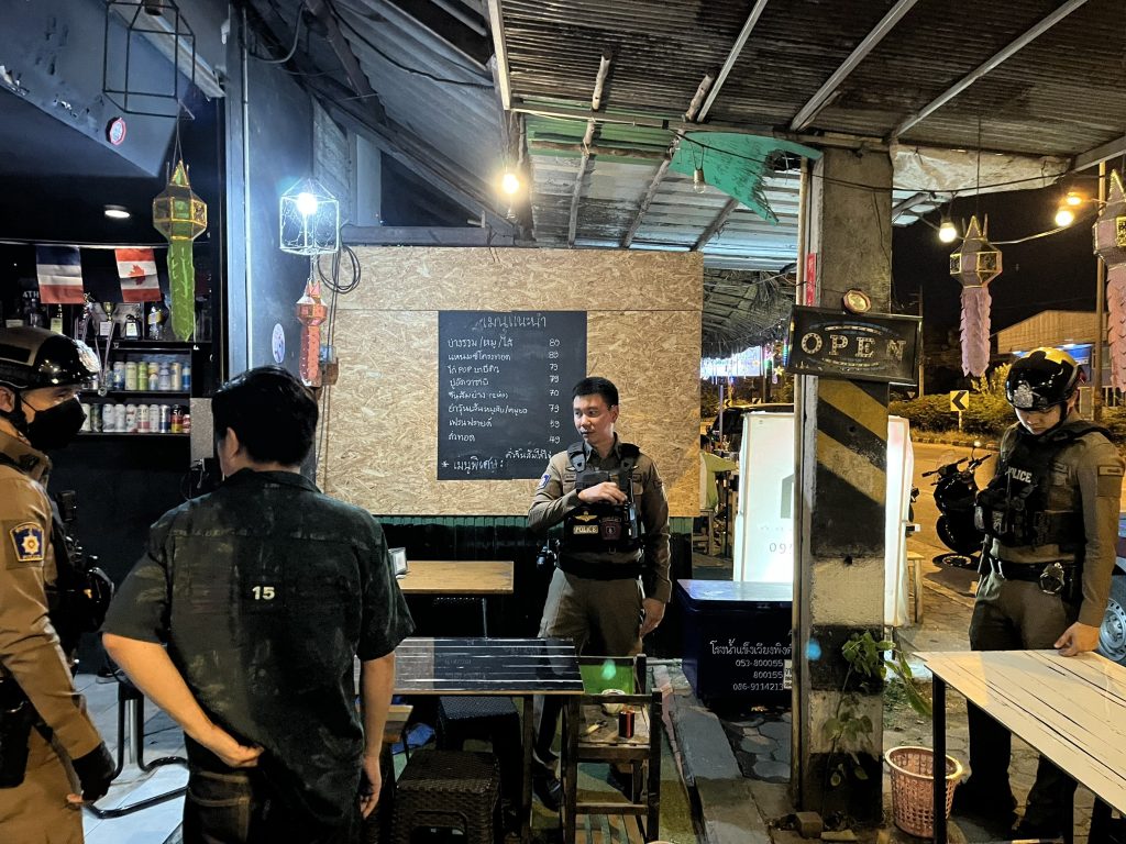@สภ.แม่ปิง@เรียน ผู้บังคับบัญชาวันนี้ ( 9 มีนาคม 2569) เวลาประมาณ 20.45 น. โดยการอำนวยของ พ.ต.อ.ญาณพล พัฒนชัย ผกก.สภ.แม่ปิง , ,พ.ต.ท.คทาวุฒิ หงษ์หนึ่ง รอง ผกก.ป.สภ.แม่ปิง , พ.ต.ต.ชญานนท์ ชูสุวรรณ์สวป.สภ.แม่ปิงสั่งการให้ ร.ต.อ.ปิยะวัฒน์ วัฒนาปิยรมย์ รอง สวป.สภ.แม่ปิง ปฏิบัติหน้าที่หัวหน้าสายตรวจ ผลัดเวลา 16.00-24.00 น. พร้อมด้วยสายตรวจรถจักรยานยนต์ ออกตรวจ สถานบริการ/ร้านจำหน่ายสุราและตรวจสอบผู้มาใช้บริการภายในร้าน บริเวณในเขตรับผิดของ สภ.แม่ปิง1.ร้าน กินรมย์2.ร้าน เปายำหม่าล่า3.ร้าน พาเพลินคาราโอเกะ4.ร้าน monkey