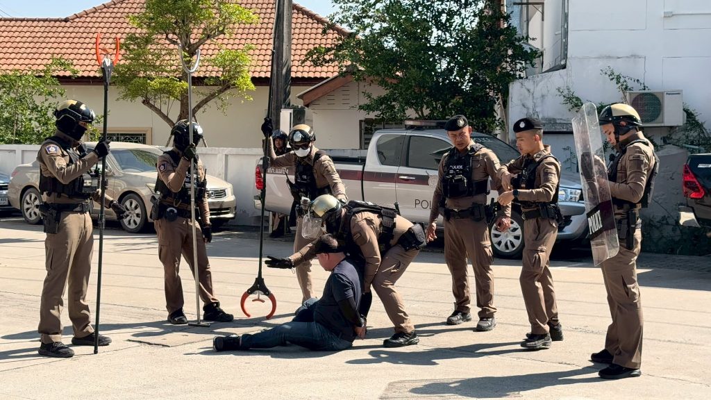 นอกจากนี้ เจ้าหน้าที่ตำรวจได้สาธิตการปฏิบัติทางยุทธวิธี เพื่อแสดงความพร้อมในการปฏิบัติหน้าที่ ประกอบด้วย