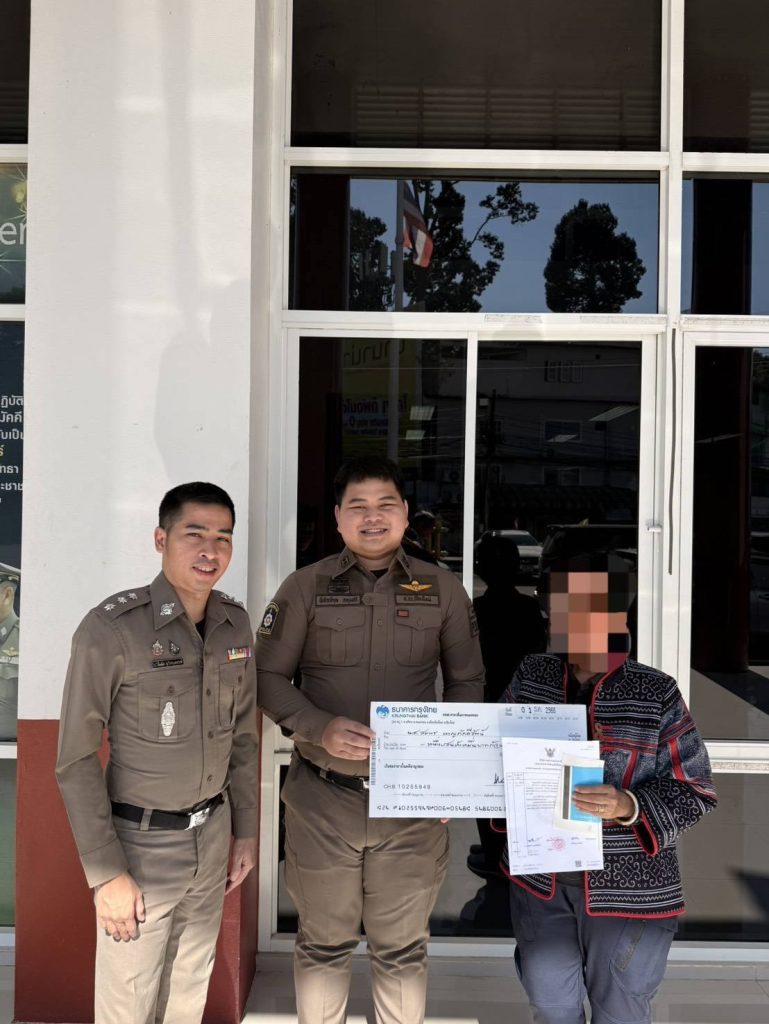 โดยมีพันตำรวจเอกญาณพล พัฒนชัย ผกก.สภ.แม่ปิง เป็นผู้มอบเช็คคืนให้กับคุณป้าผู้เสียหาย