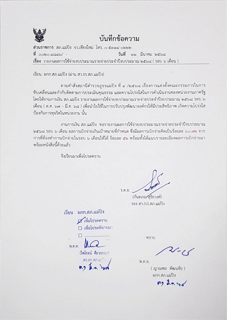รายงานการใช้จ่ายงบประมาณประจำปี 2568 สภ.แม่ปิง
